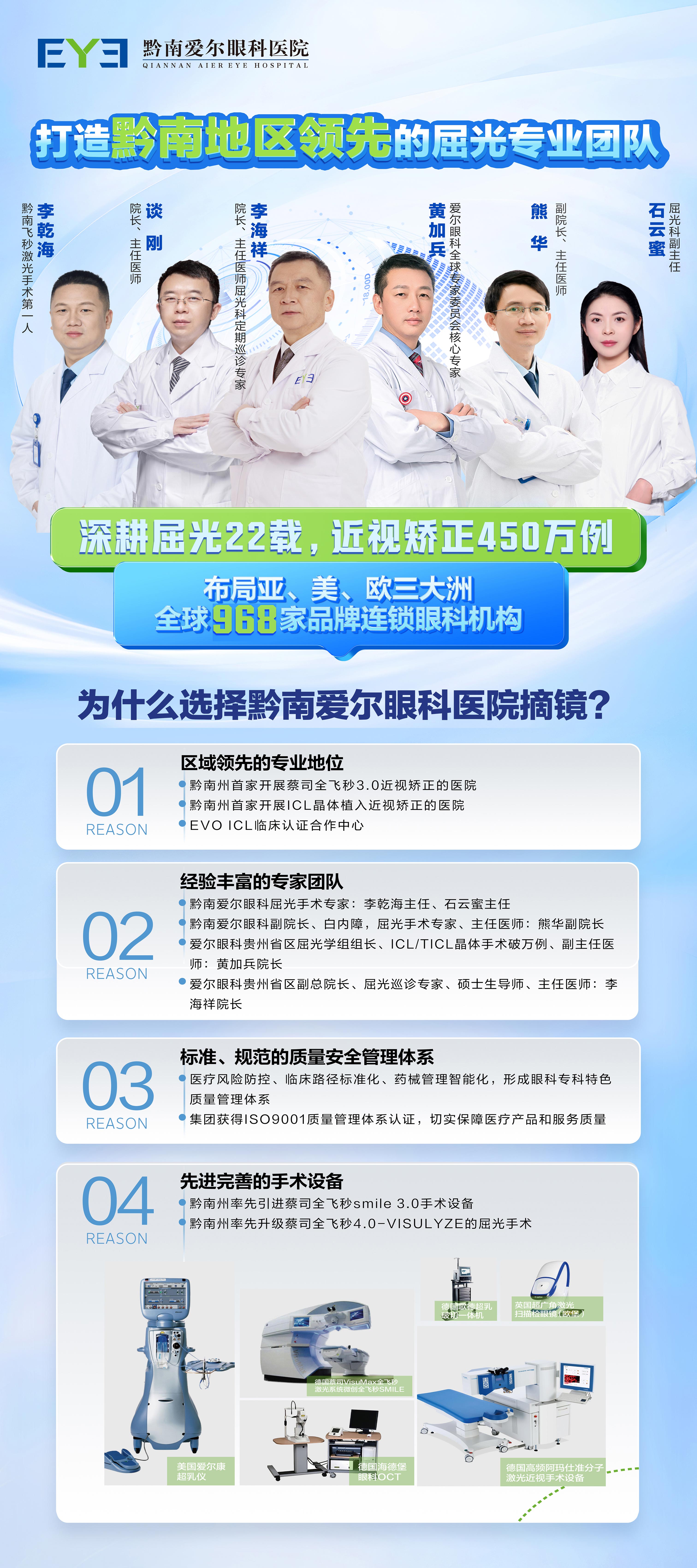 黔南爱尔眼科医院门诊医师擅长领域在白内障诊疗、眼科整形方法有丰富临床经验。尤其是老年性白内障、老花……[详细]
